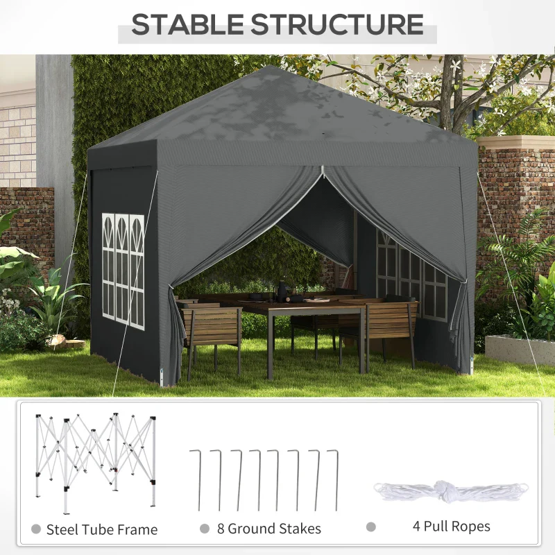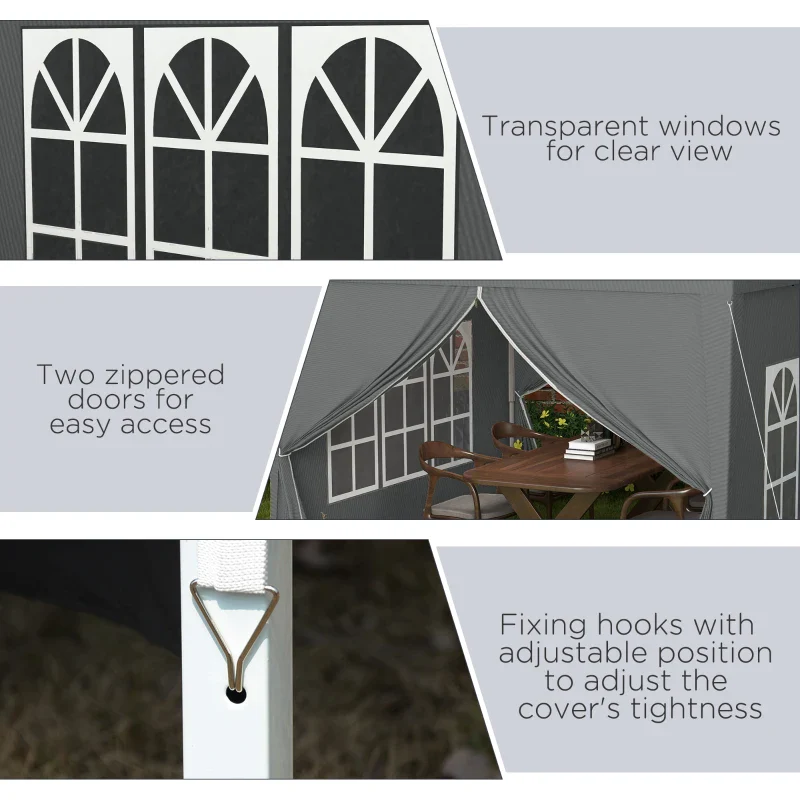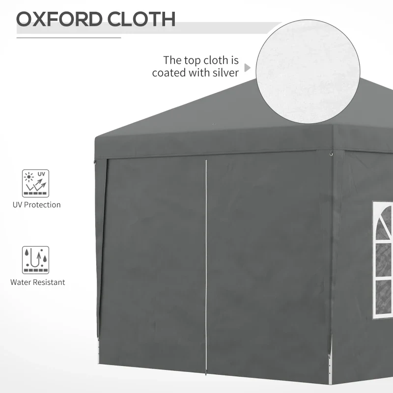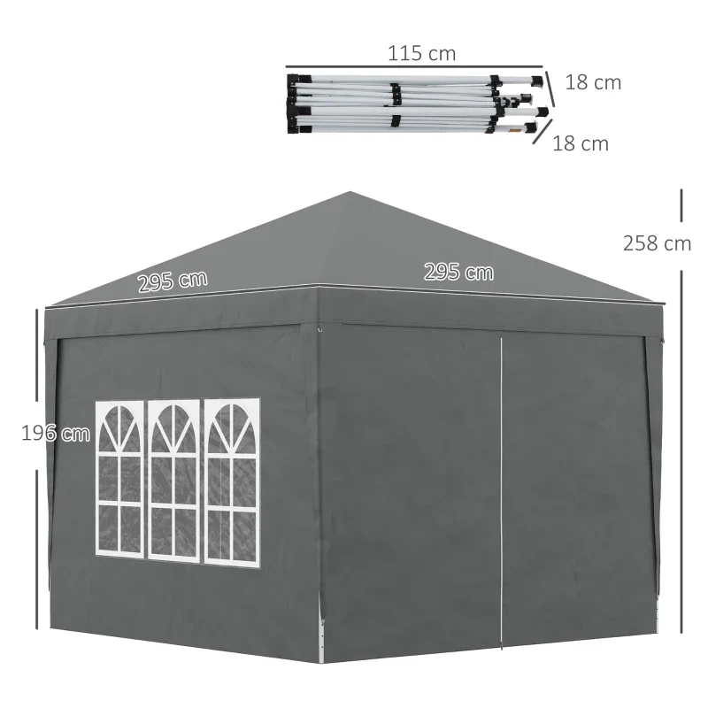 3×3 m-es, Szürke „Pop-Up” Kerti Pavilon / Party-sátor Oldalfalakkal