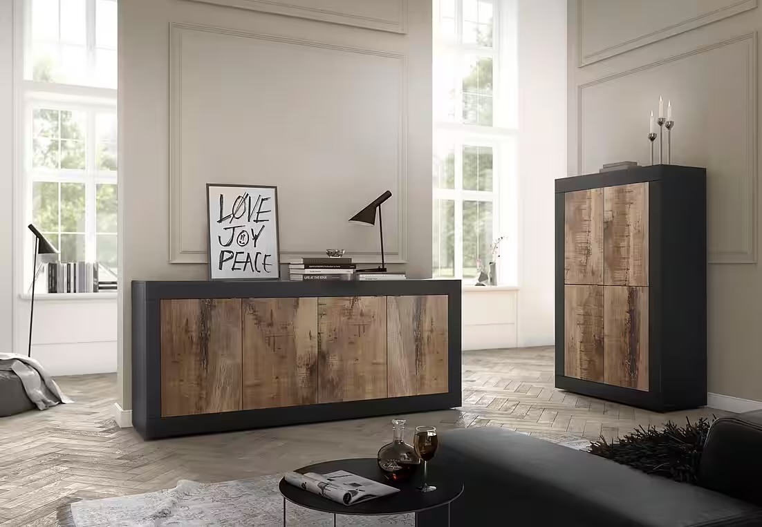 A Basic tálalókomód remek választás, ha egy modern, letisztult és nagy tárolókapacitású bútort keresel nappaliba, étkezőbe vagy akár hálószobába. A 207 cm-es szélesség, a praktikus 4 ajtós kialakítás és az elegáns keretes frontmegjelenés egyszerre teszi látványossá és jól használhatóvá ezt a bútordarabot. A fekete matt és peroszínkombináció különleges, mégis könnyen kombinálható megjelenést ad a komódnak.