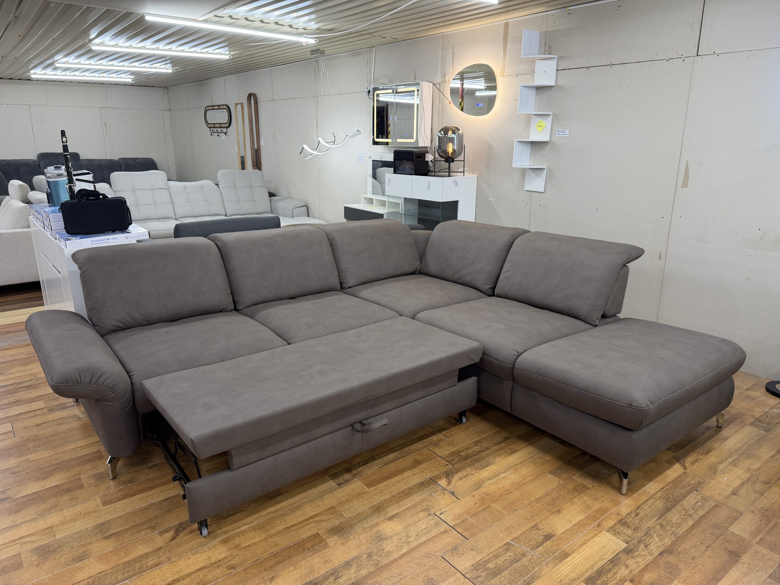 COLORADO sarokülő – Aquaclean kárpittal (szürkésbarna) – Ágyazható, ágyneműtartós, állítható ülésmélység