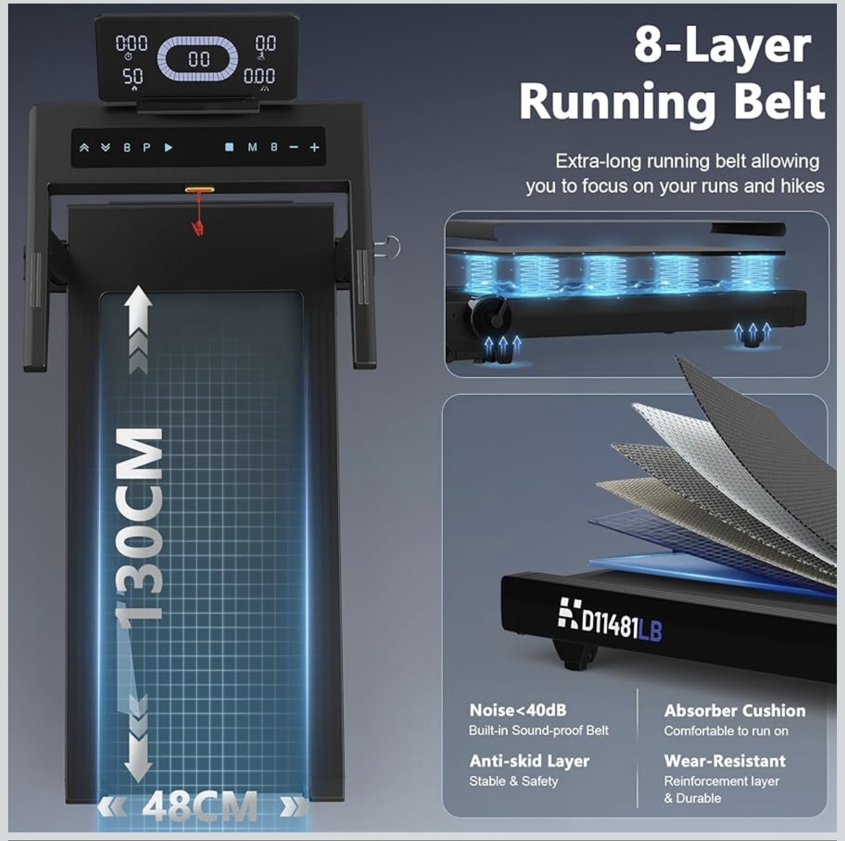 A futófelület mérete kb. 48 x 130 cm-es, ami kényelmes lépés- és futástartományt adhat a mindennapi edzésekhez. Az összecsukható kivitelnek köszönhetően használaton kívül könnyebben elhelyezhető, így azoknak is jó választás lehet, akik helytakarékos, mégis komoly tudású futópadot keresnek.