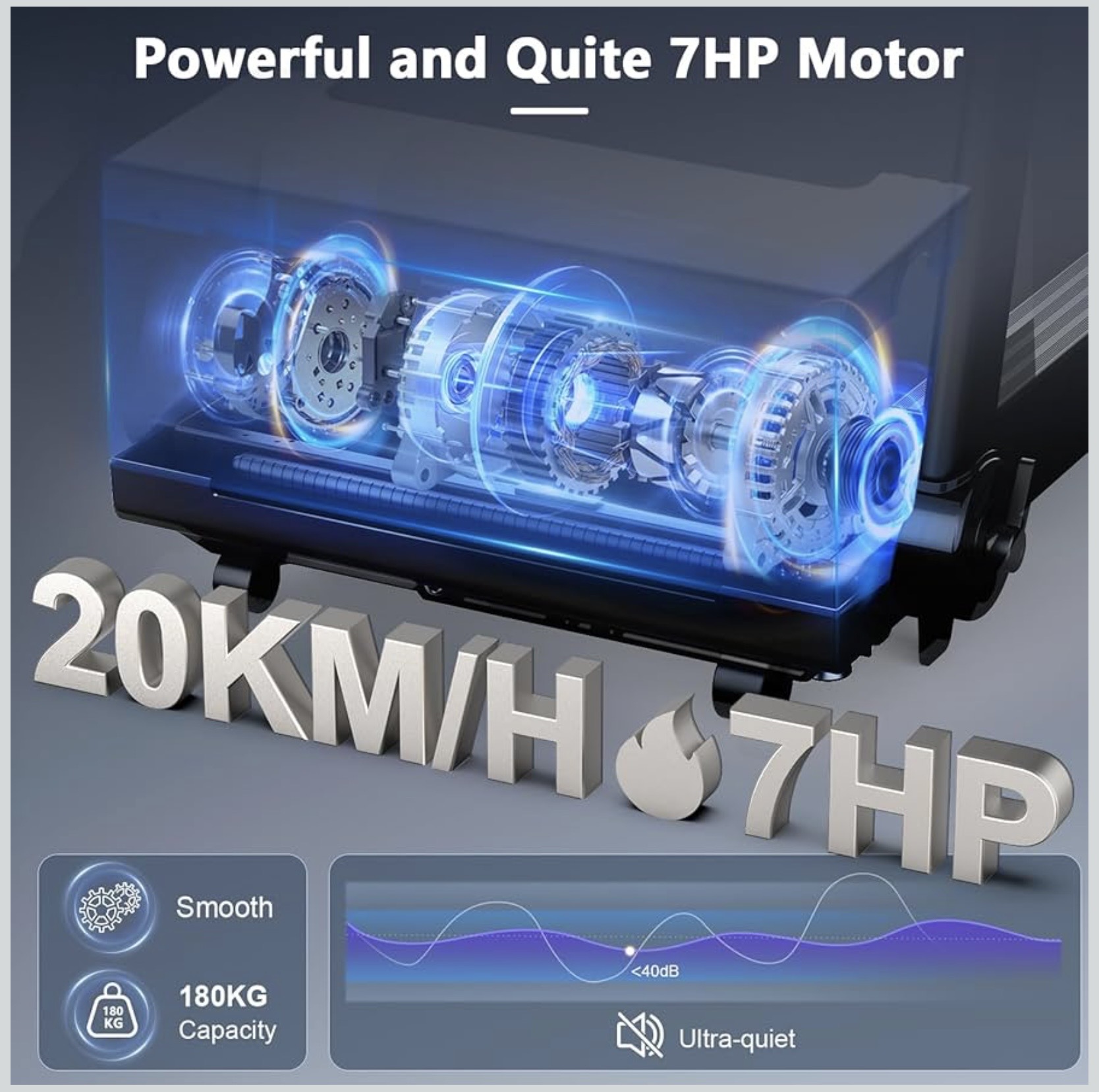 A futópad kiemelkedően nagy, 180 kg-os terhelhetőséggel rendelkezik, ezért stabil és megbízható választás lehet szélesebb felhasználói kör számára is. A készülékhez 7 HP teljesítményű motor társul, amely megfelelő erőt biztosít a nagyobb sebességű használathoz és az emelkedős edzésekhez is.