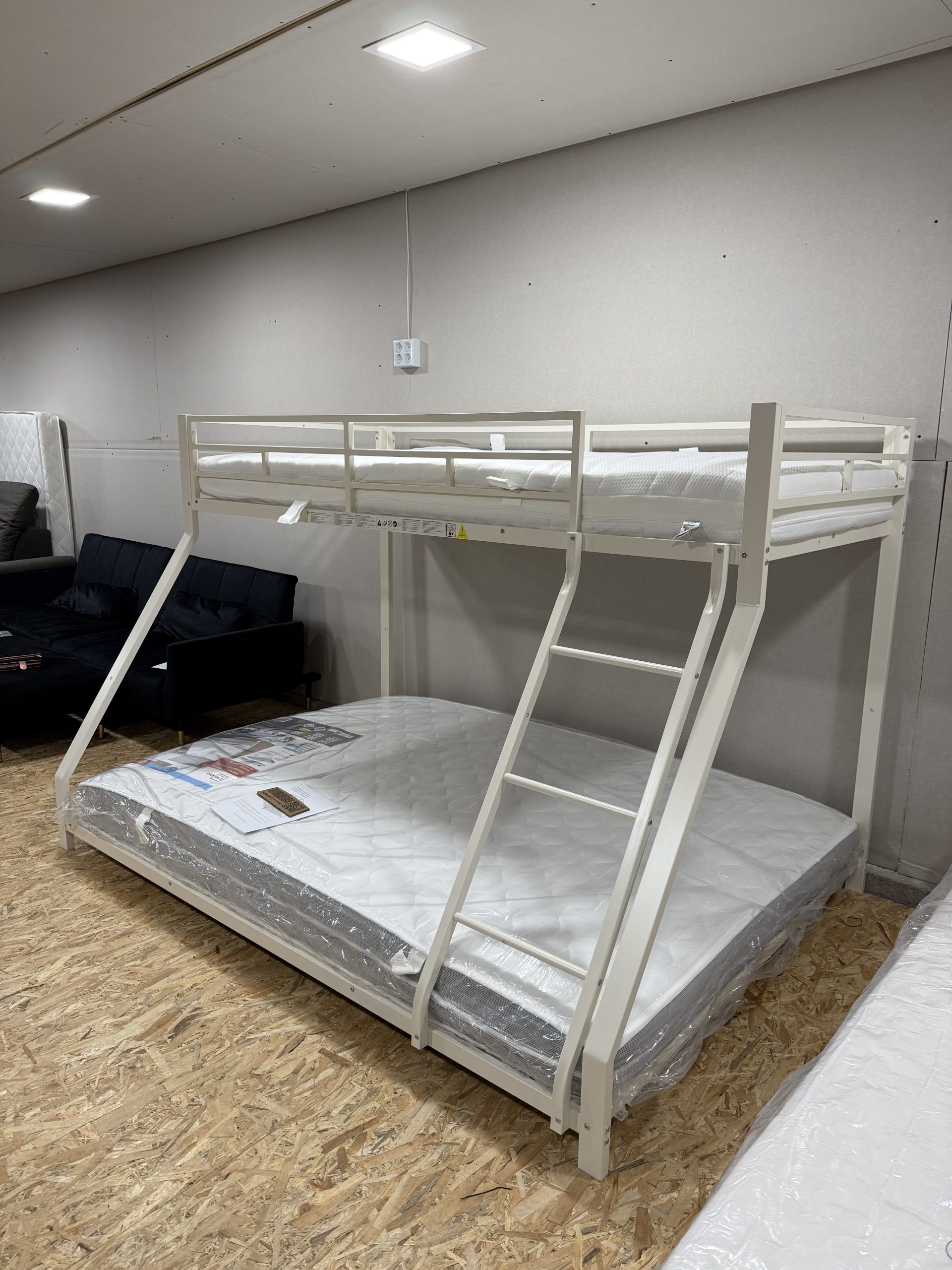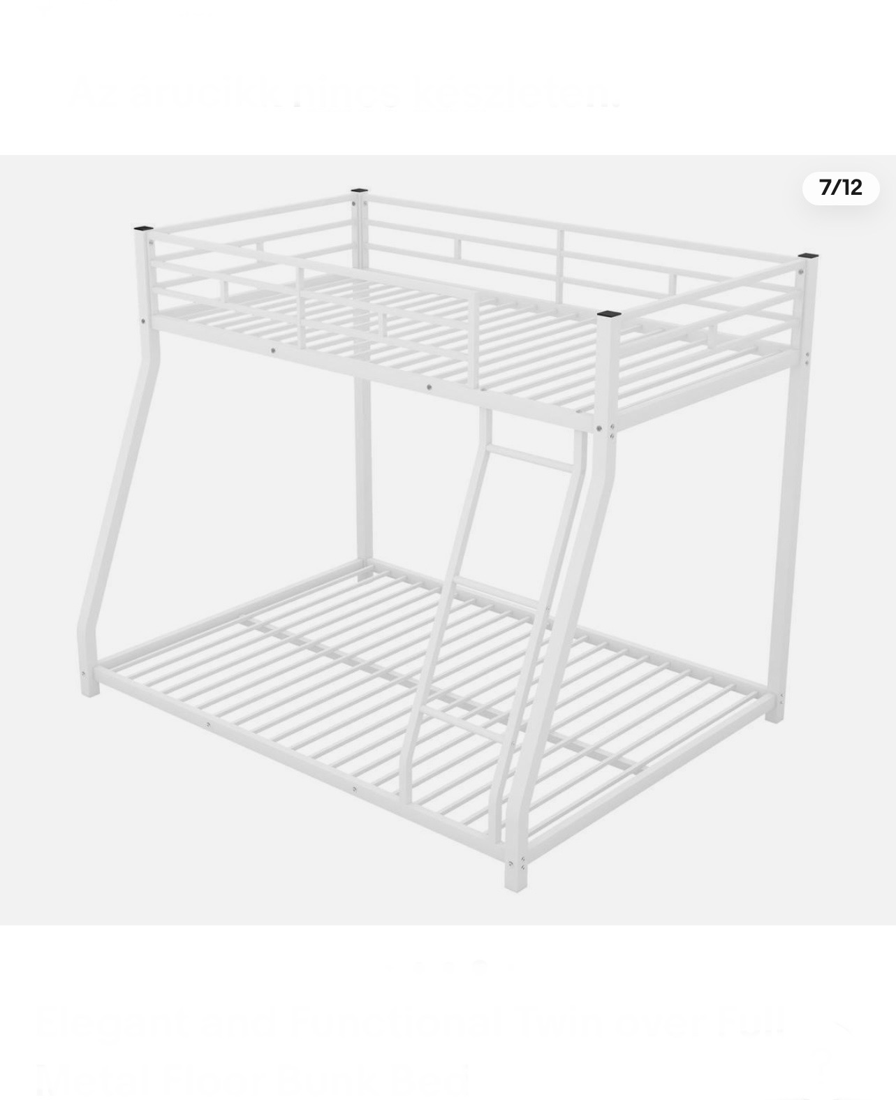 Emeletes ágy 90×200 140×200 korláttal és lépcsővel, ráccsal, fém, fehér