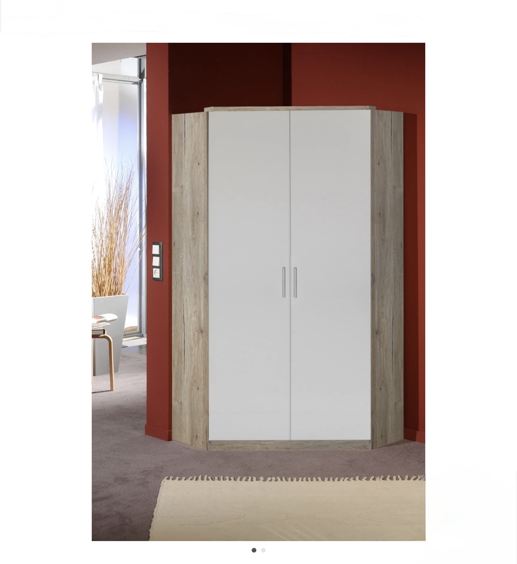 A JOKER sarokszekrény remek megoldás, ha a szoba sarkát is szeretnéd maximálisan kihasználni. Letisztult San Remo tölgy + fehér színvilága modern és könnyen kombinálható más bútorokkal. Kétajtós kialakításának köszönhetően jól átlátható, a belső elrendezés pedig praktikus: középen akasztós rész, a két oldalon pedig polcos tároló kap helyet – ideális ruháknak, ágyneműnek, dobozoknak.
