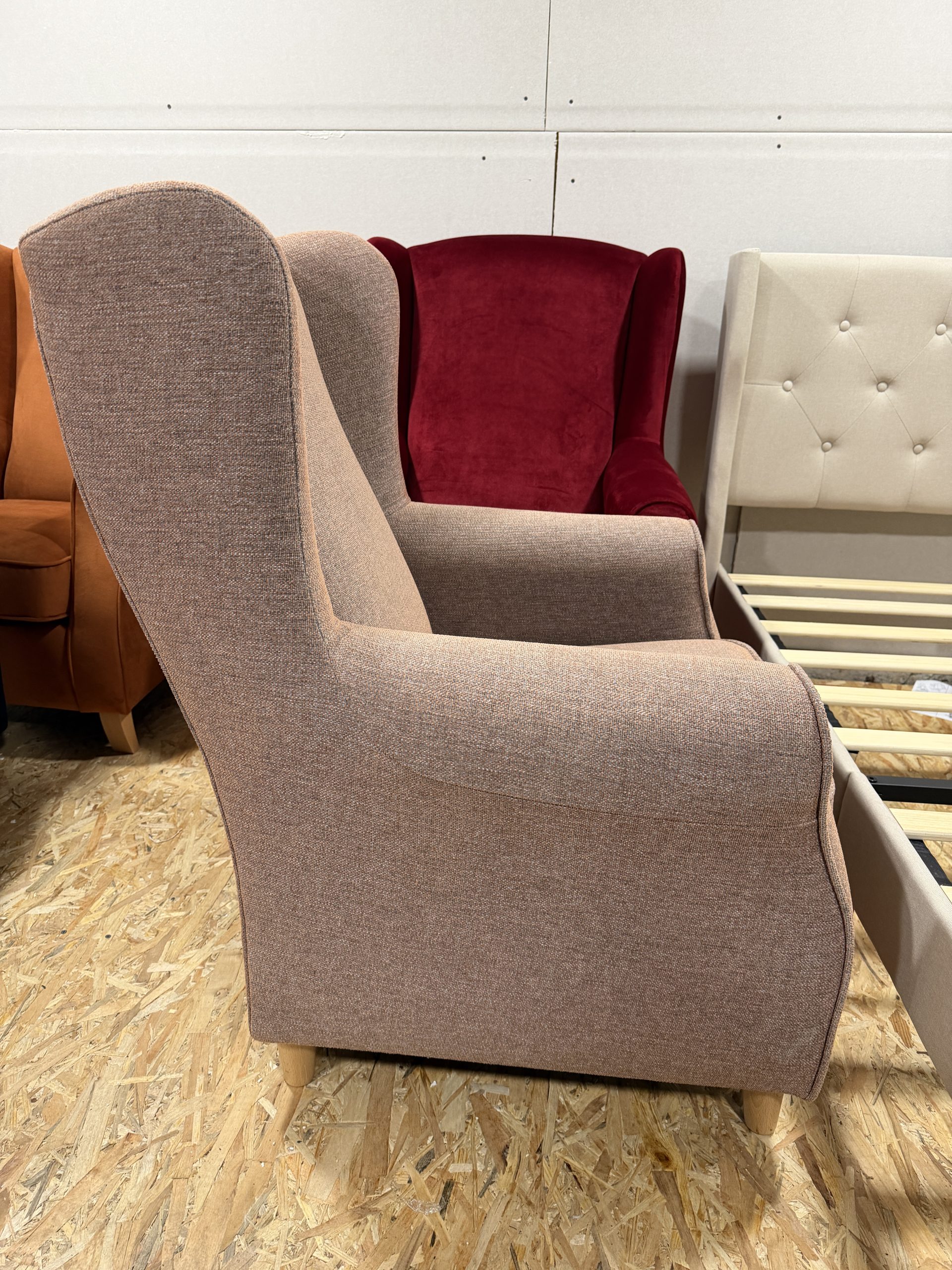 A Luke füles fotel klasszikus formavilágával és otthonos megjelenésével igazán hangulatos kiegészítője lehet a nappalinak, hálószobának vagy olvasósaroknak. A magas háttámla, a karakteres füles kialakítás és a harmonikusan ívelt karfák együtt időtálló, elegáns összhatást teremtenek, miközben kényelmes helyet biztosítanak a pihenéshez. A modell többféle megjelenéssel is jól érvényesül, legyen szó letisztult egyszínű szövetről, puhább velúr hatású borításról vagy strukturáltabb kárpitról.