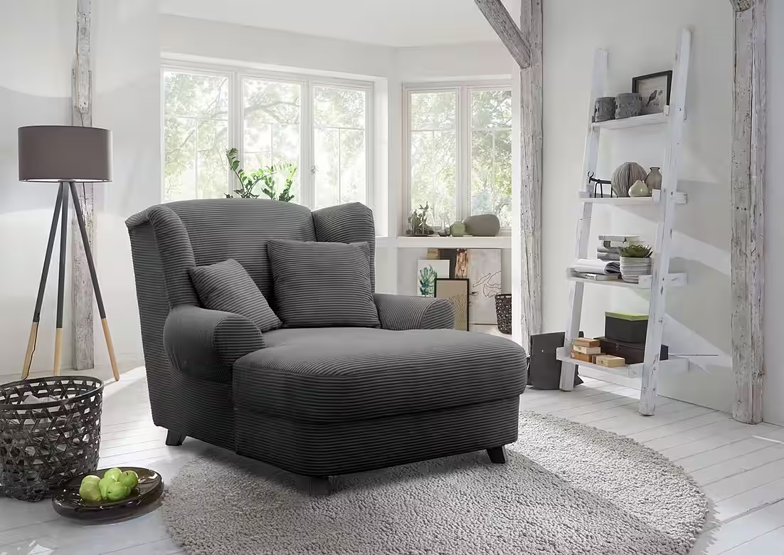 Oase XXL fotel 150 kg teherbírással, 120 cm széles kivitelben, szürke kordbársony huzattal (94401566)