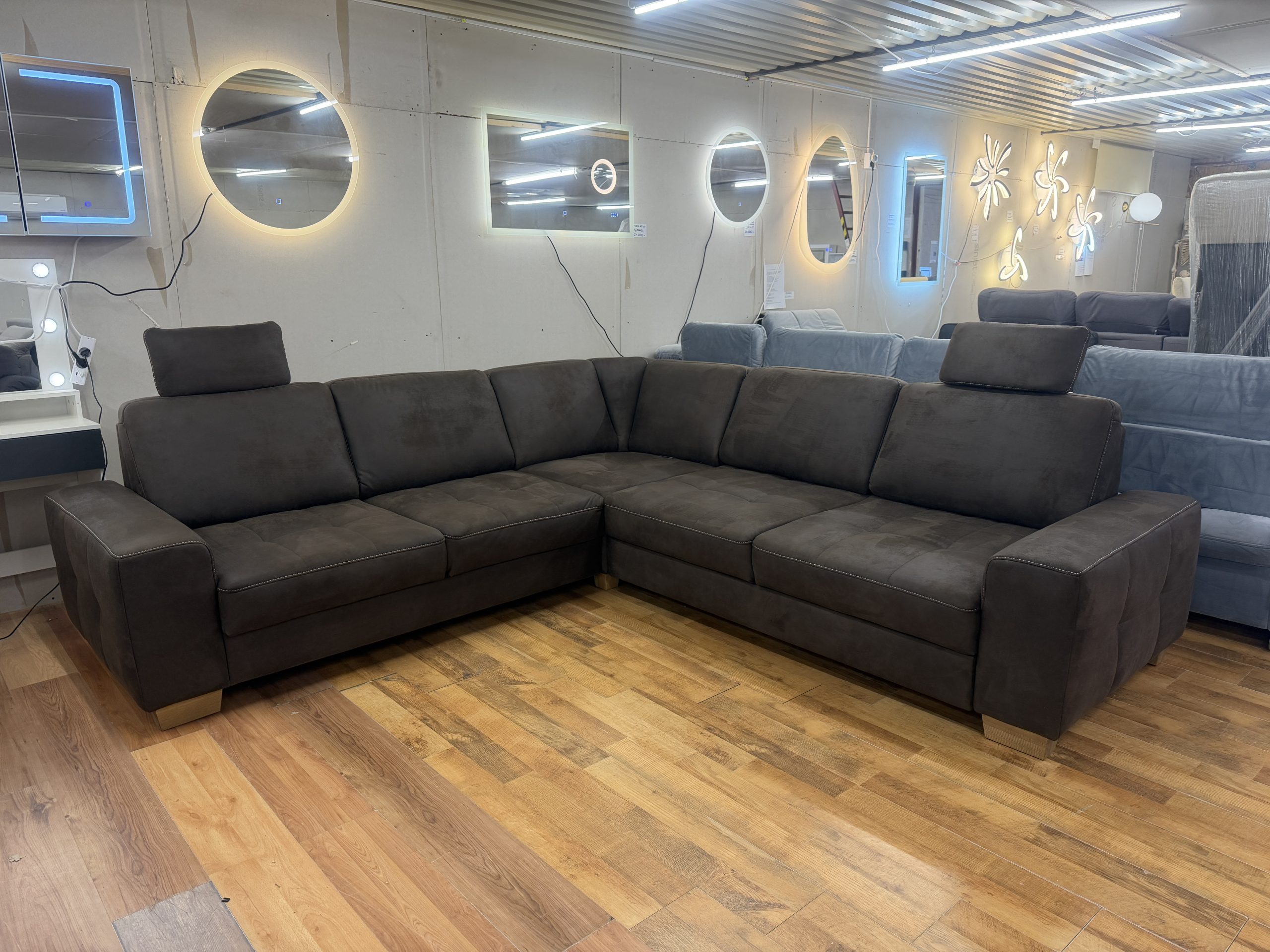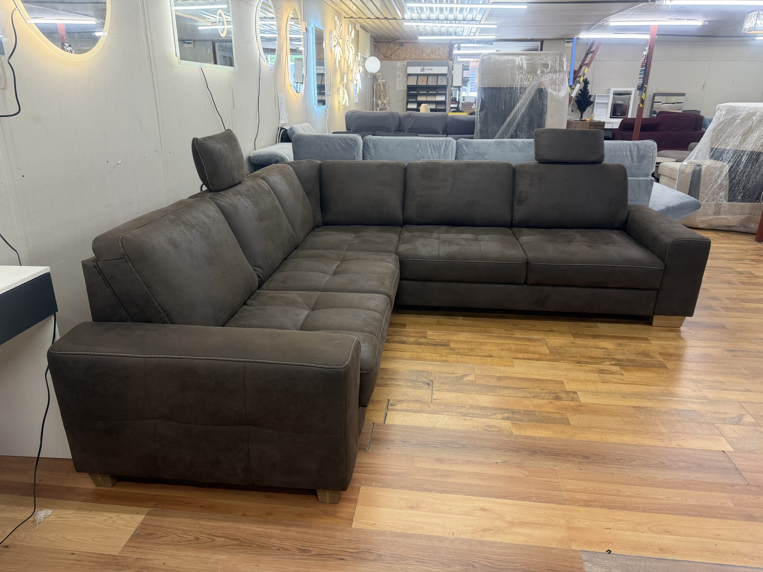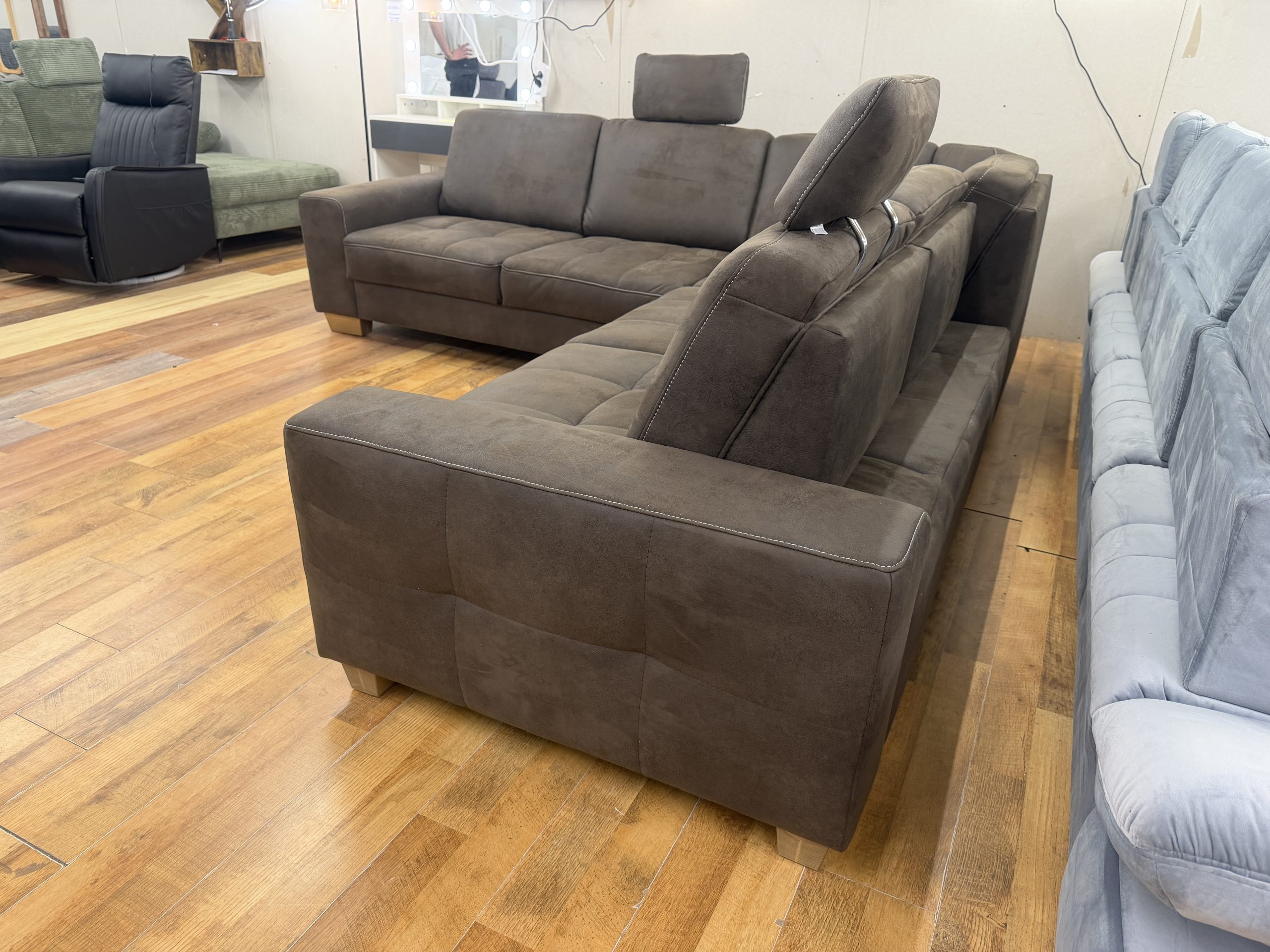 A Puccini barna alcantara sarokkanapé tökéletes választás azoknak, akik egy nagy méretű, kényelmes, ágyazható és látványos kanapét keresnek. Ülésmélység-állításával, áthelyezhető fejtámláival, rugózott ülőfelületével és térben is elhelyezhető kialakításával praktikus és elegáns központi darabja lehet a nappalinak.