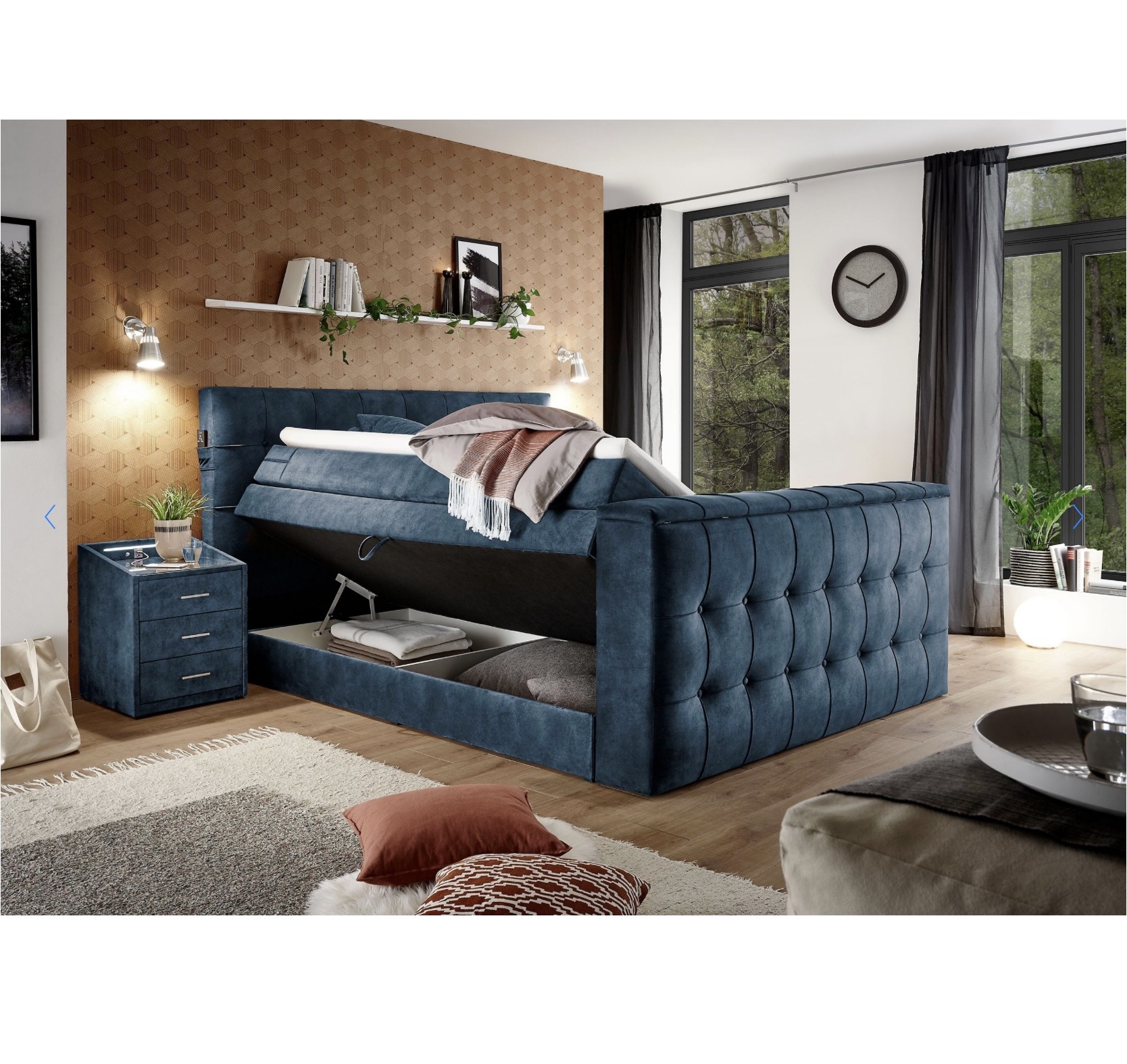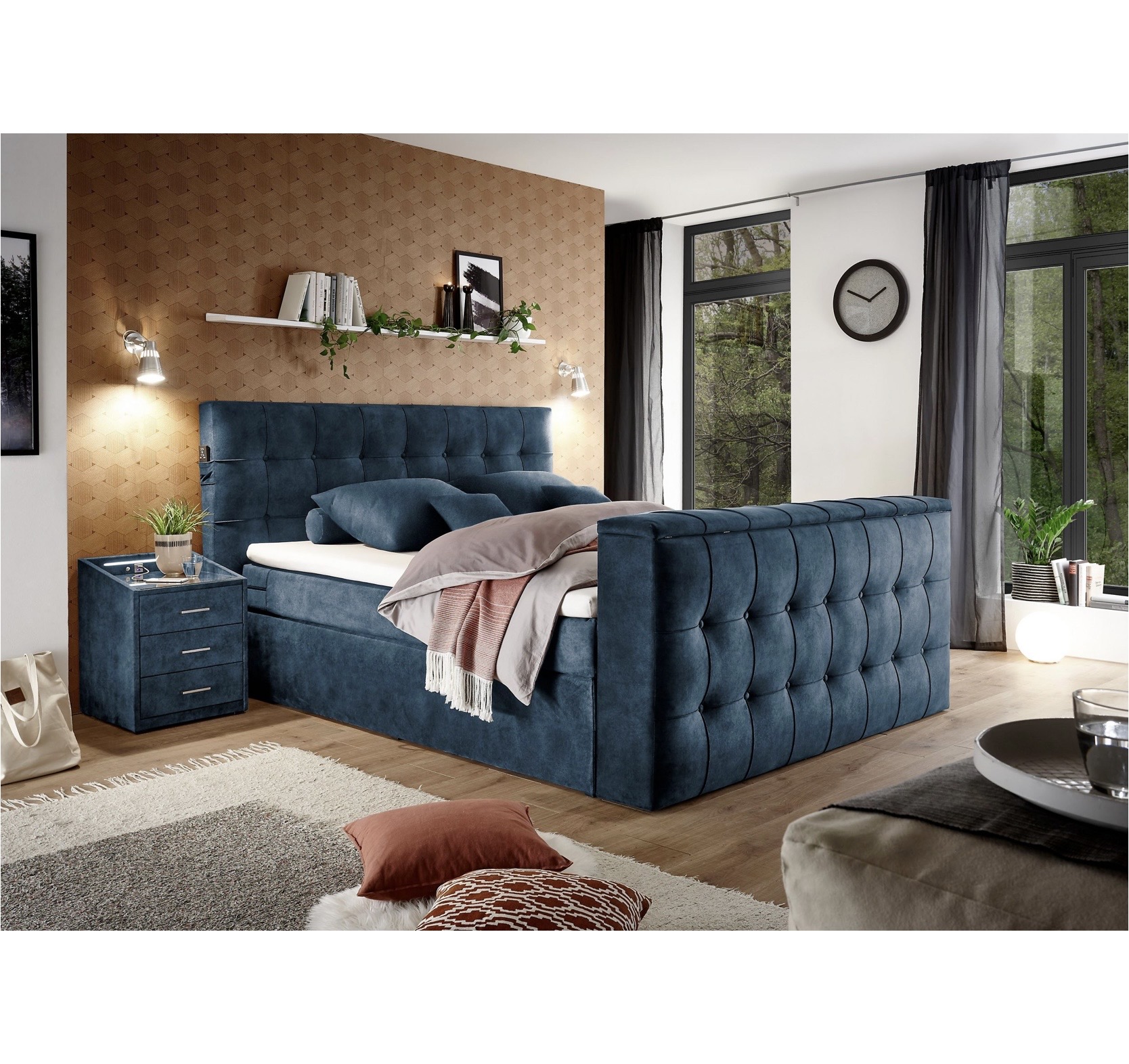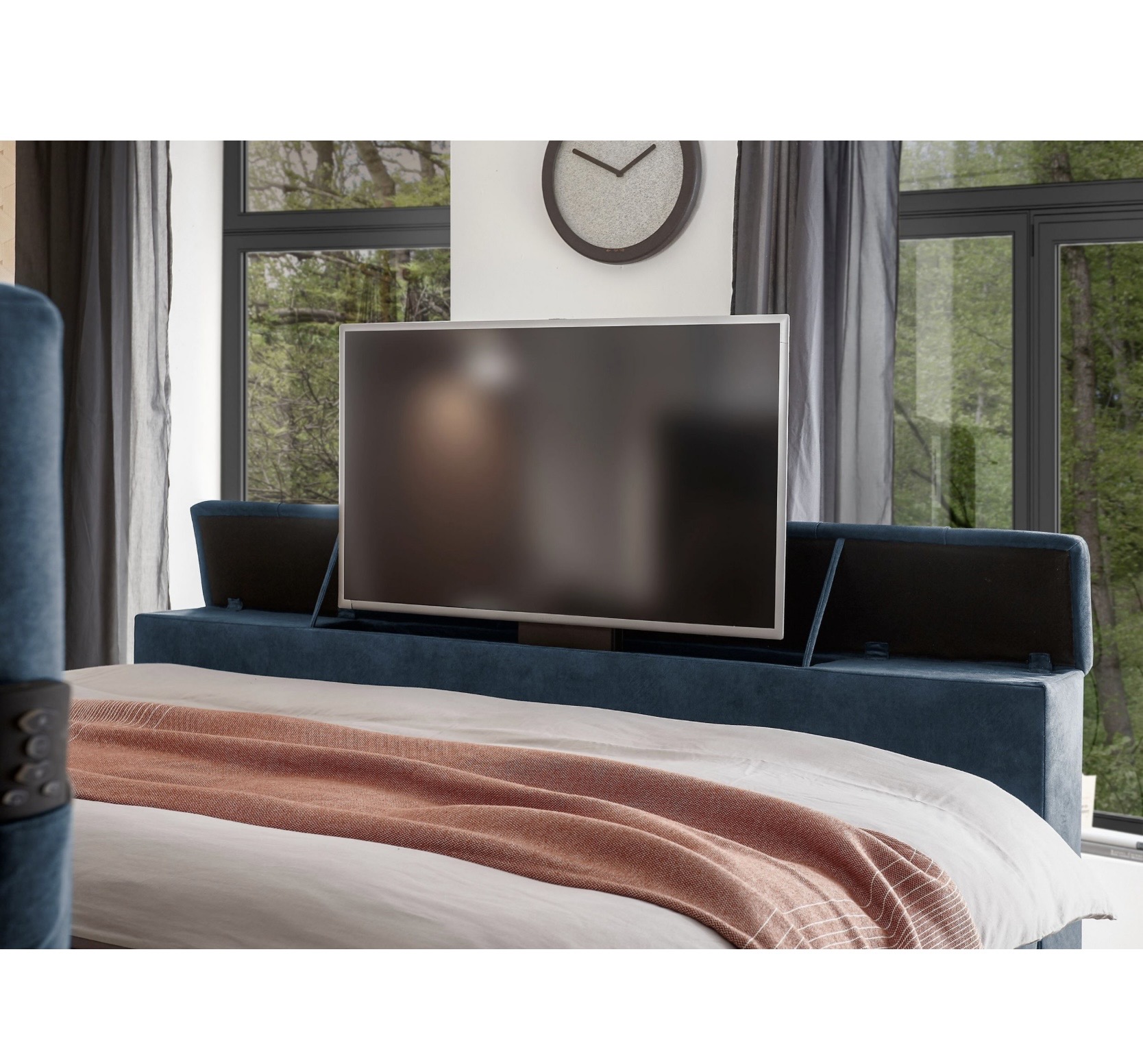 RICHMOND boxspring ágy – süllyeszthető TV-tartóval + távirányítóval – 180×200 cm – ágyneműtartós