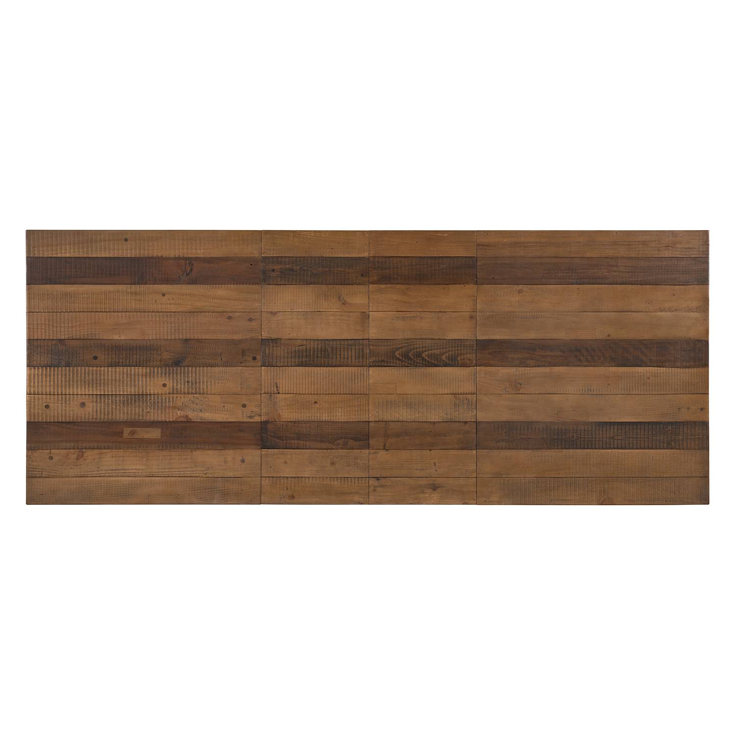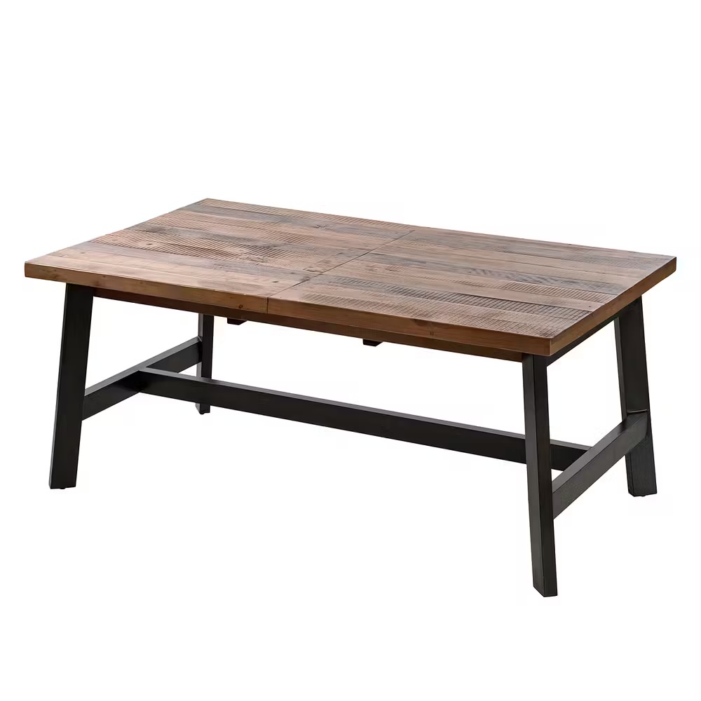 TAMATI kihúzható étkezőasztal (terhelhetőség: 100 kg) – sötét pinia (újrahasznosított fa) asztallap, fekete fém lábak