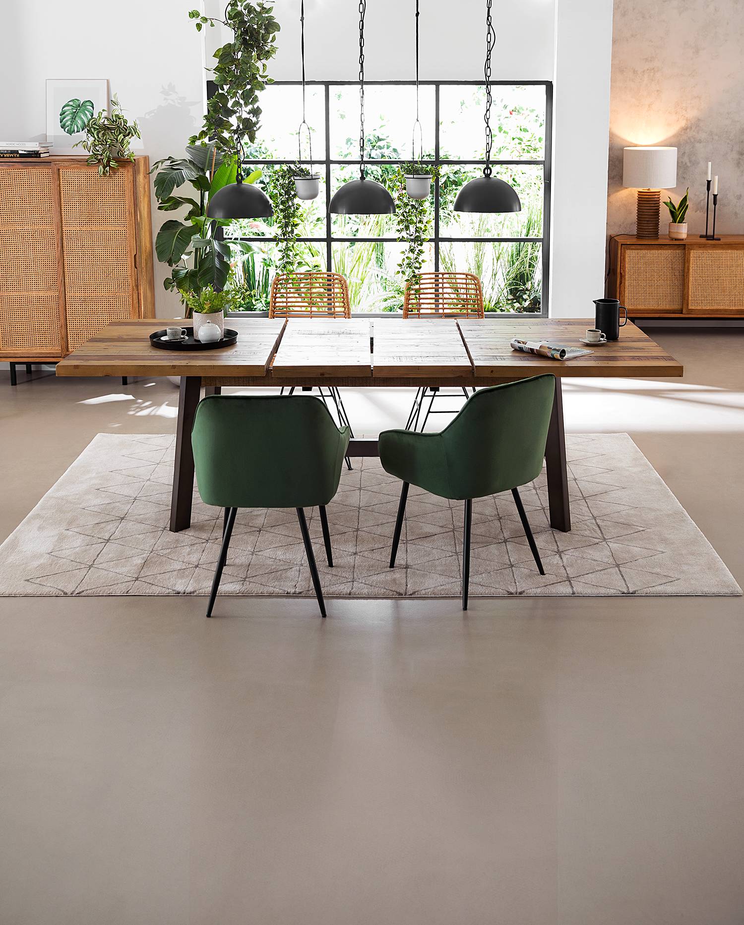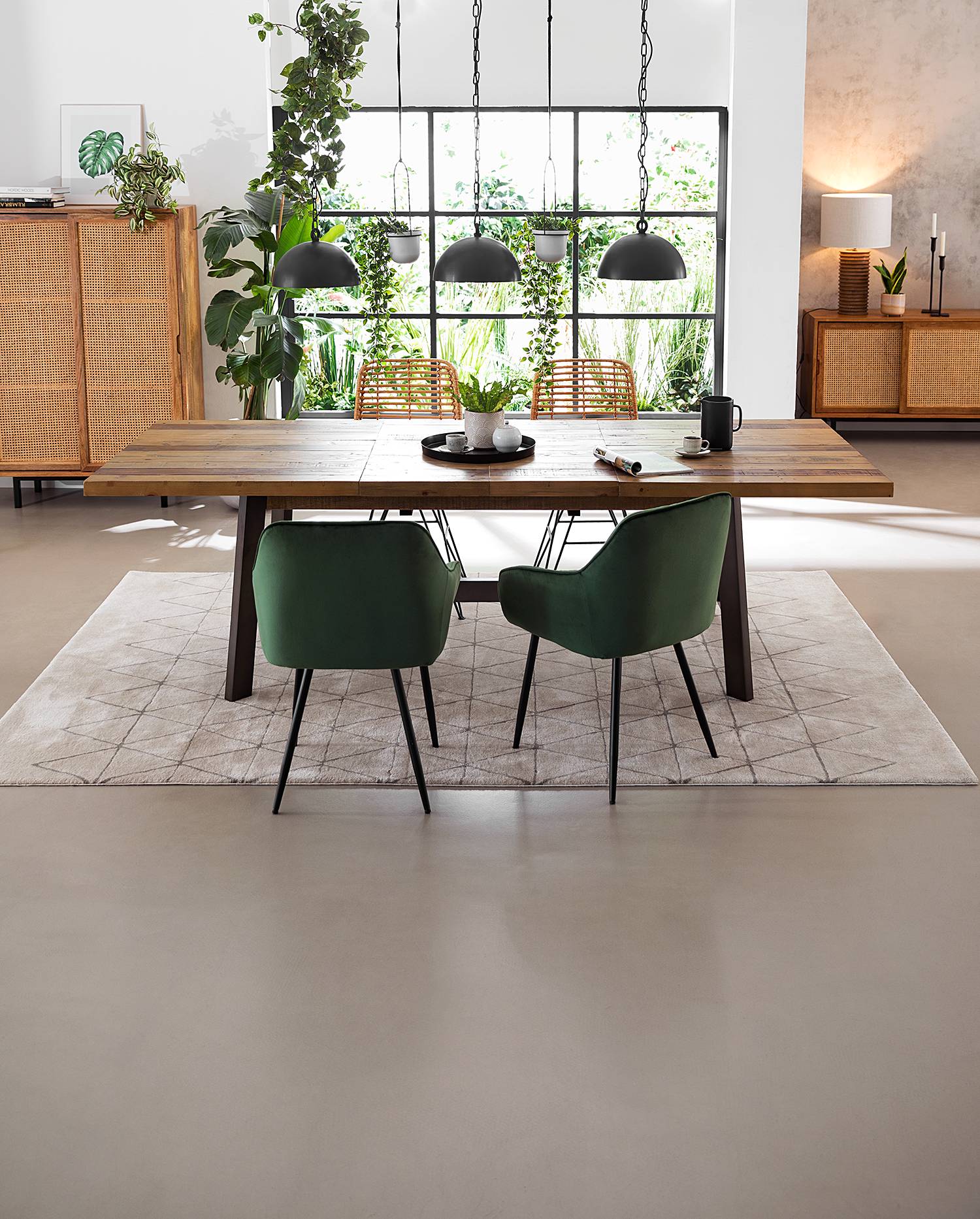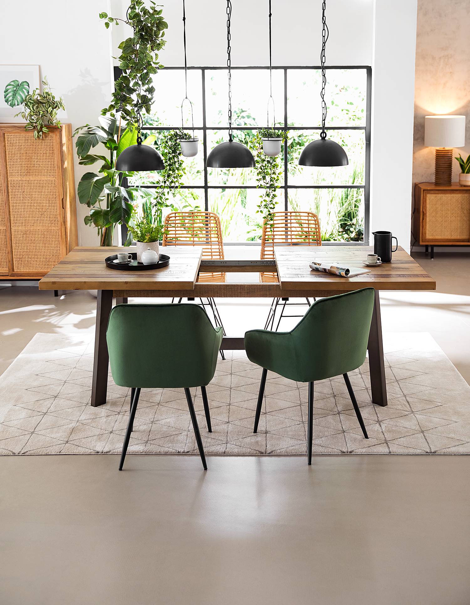 A TAMATI étkezőasztal igazi statement darab: karakteres, csíkos hatású, “rough” pinia tömörfa, hozzá pedig fekete, ipari stílusú fém lábazat – ettől lesz egyszerre modern és időtálló. A legjobb rész? Kihúzható, így hétköznap kényelmesen használható, vendégségkor pedig pillanatok alatt nagyobb asztallá alakítható.