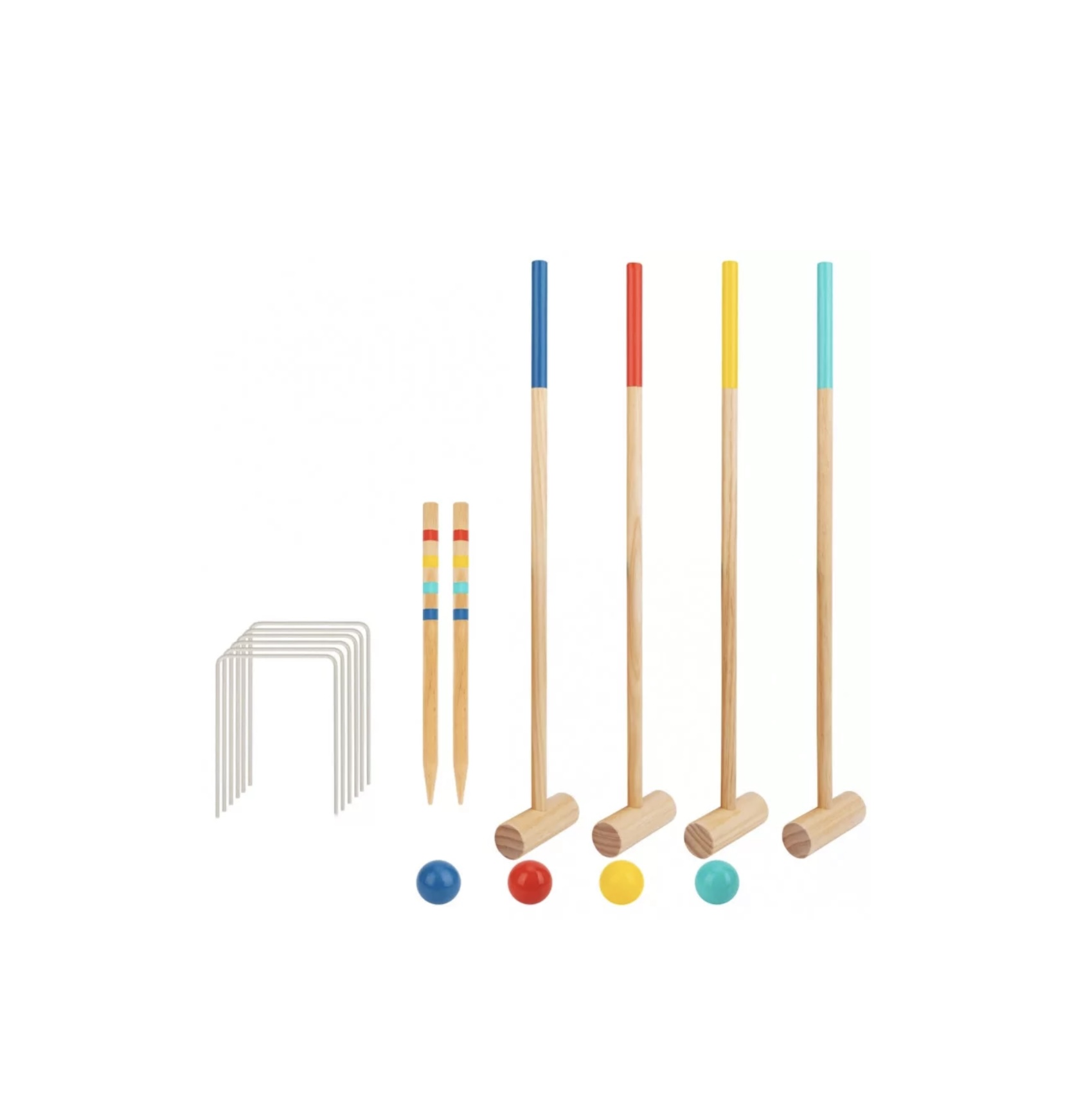 - Tartalom : A készlet tartalmaz 4 kalapácsot, 6 kaput, 4 labdát, 4 botot és egy tárolót, ami lehetővé teszi a könnyű hordozást és tárolást.