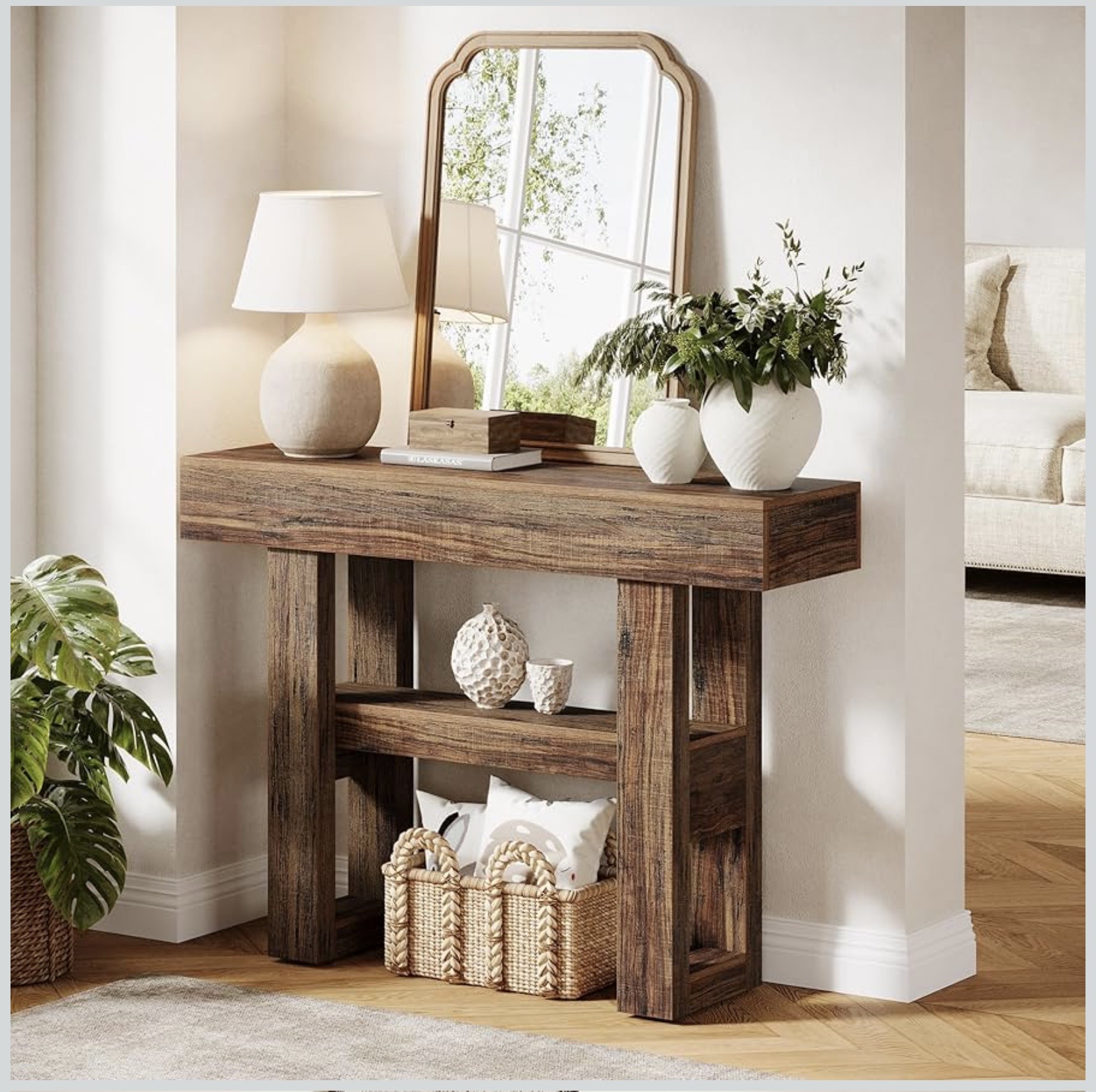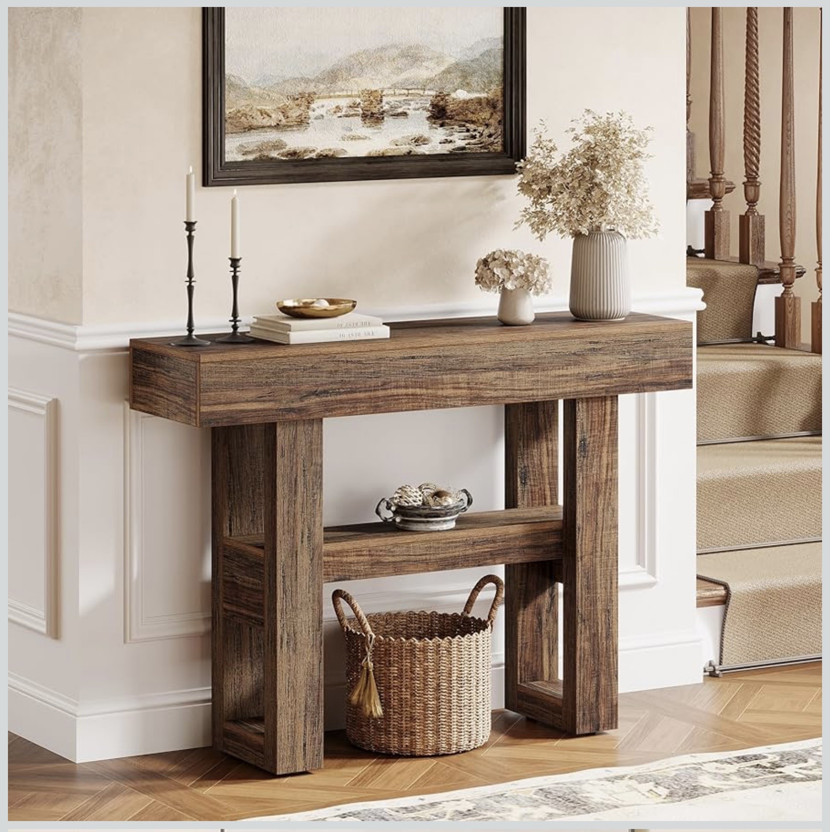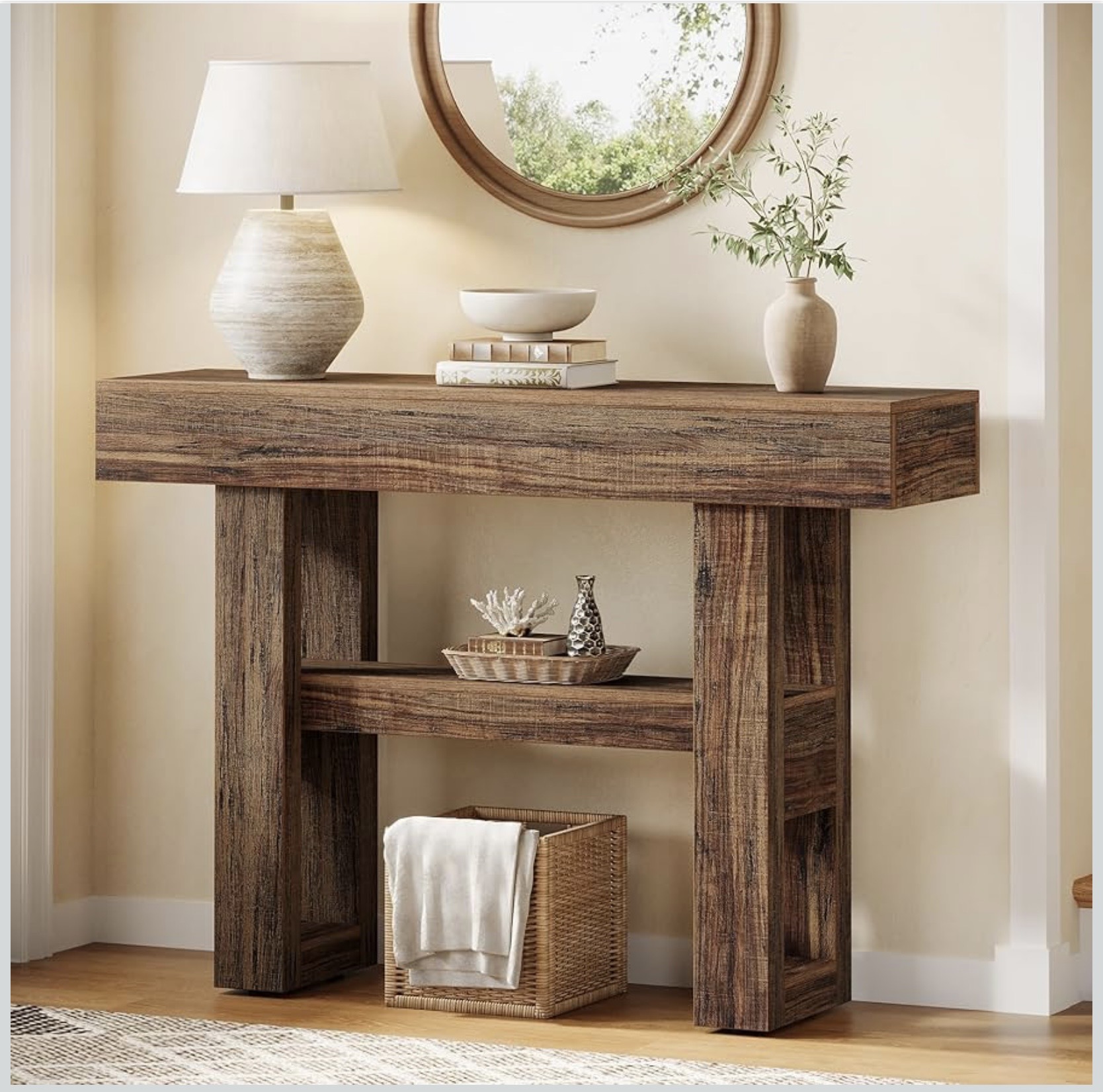 Tribesigns konzolasztal 105 cm – 90 kg terhelhetőséggel, rusztikus barna színben (HOGA-YC0009)
