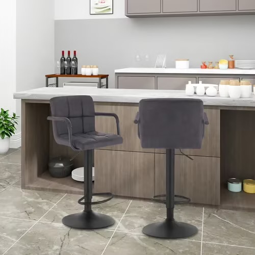WOLTU forgó bárszék pár kartámasszal, állítható magassággal, szürke ekobőr ülőfelülettel, 150 kg terhelhetőség (BH 113) - MH Bútor