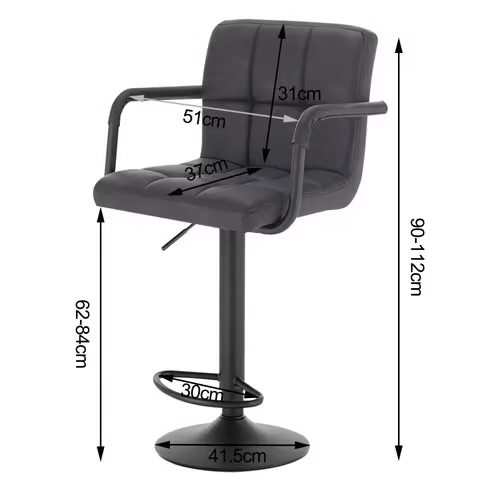 A modell egyik legnagyobb előnye az állítható ülésmagasság. A gázliftes szerkezetnek köszönhetően az ülés magassága 62 és 84 cm között szabályozható, így többféle pult- vagy bármagassághoz is jól igazítható. A teljes magasság ennek megfelelően 90 és 112 cm között változik.