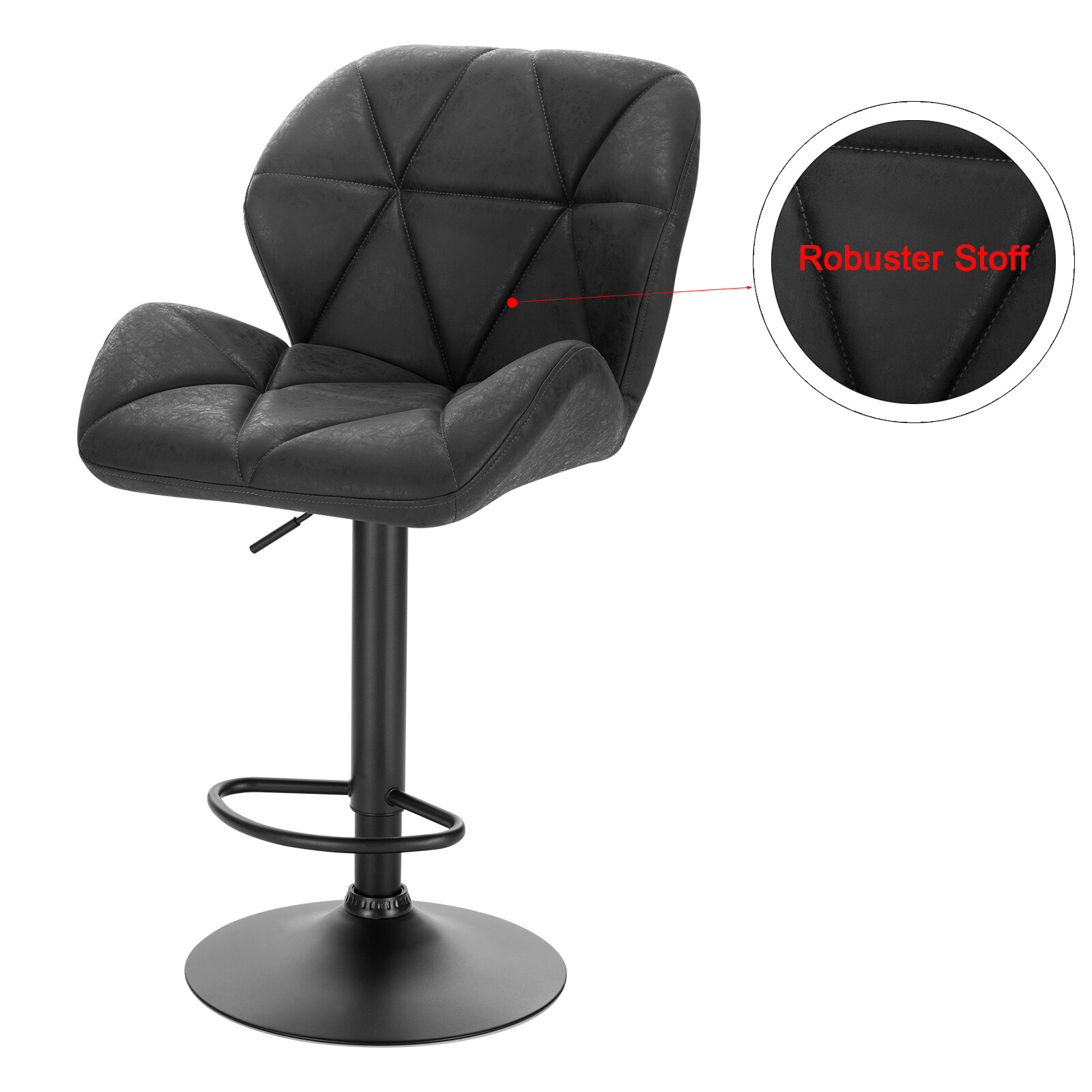 WOLTU forgó bárszék pár háttámlával, fekete ekobőr kárpittal, 120 kg terhelhetőség (BH 287)